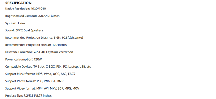 | Special Features | Netflix-Certified& Dolby Audio, Auto-foucs& 4D/4P Keystone Correction& Zoom Function, Native 1080P& 650ANSI& HDR10 &UHD support 4K, Fast Stable2.4G/5G WiFi & Bluetooth5.1 |