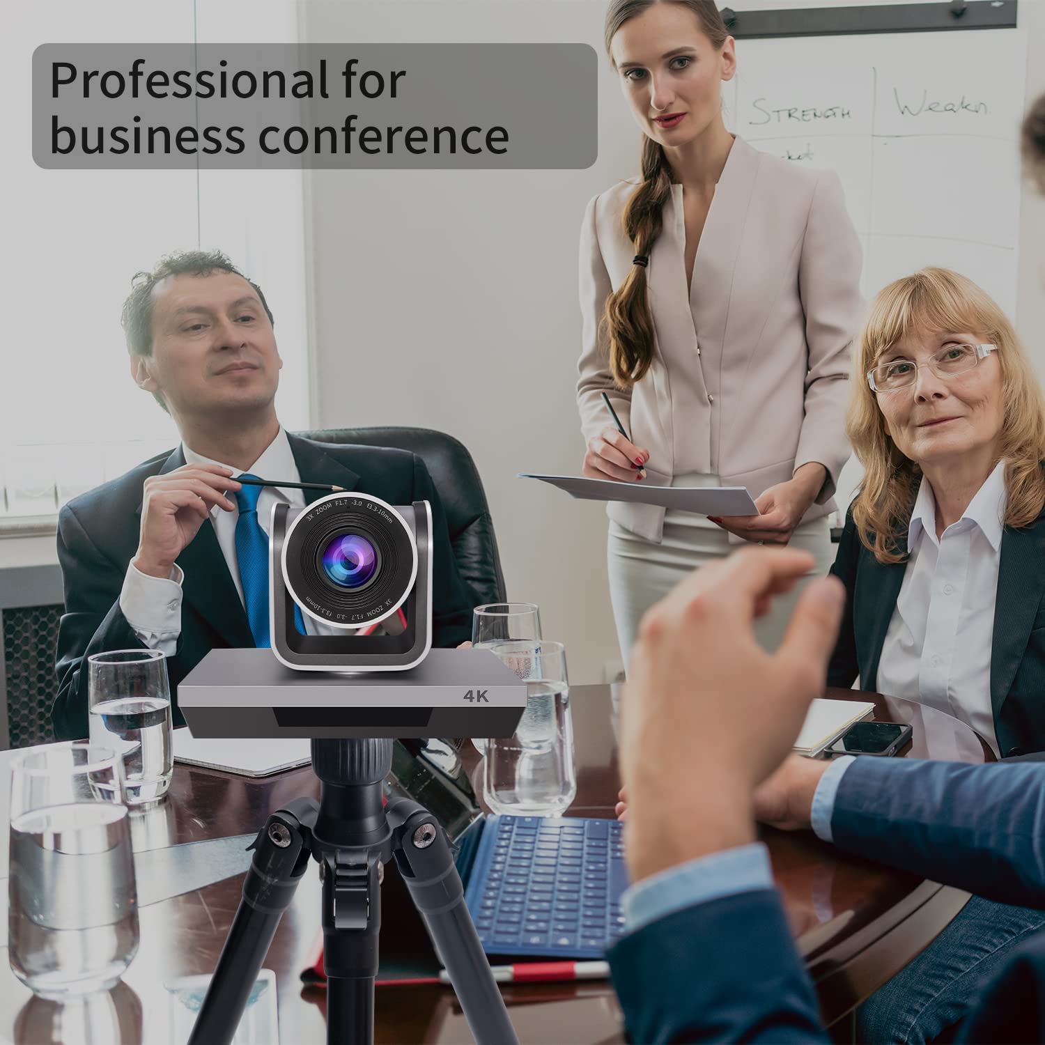 - AI PTZ camera 4K with auto-tracking function, artificial intelligence algorithm for human tracking, the lens can follow your every movement and rotate. With auto-zoom and framing, you will always be the center of the stage.