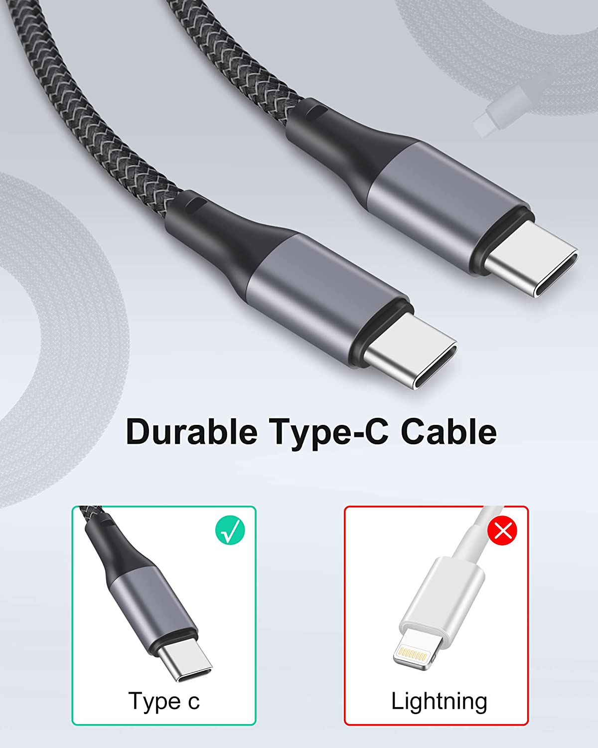 [Braided USB C to USB C Cable] Included 3FT 6FT 10FT multi length USB C charger cable easy for fast charging on different occasions, such as for travel, home, car, office, etc. Braided with durable nylon material, it has been tested to withstand at least 20000+ times bending.