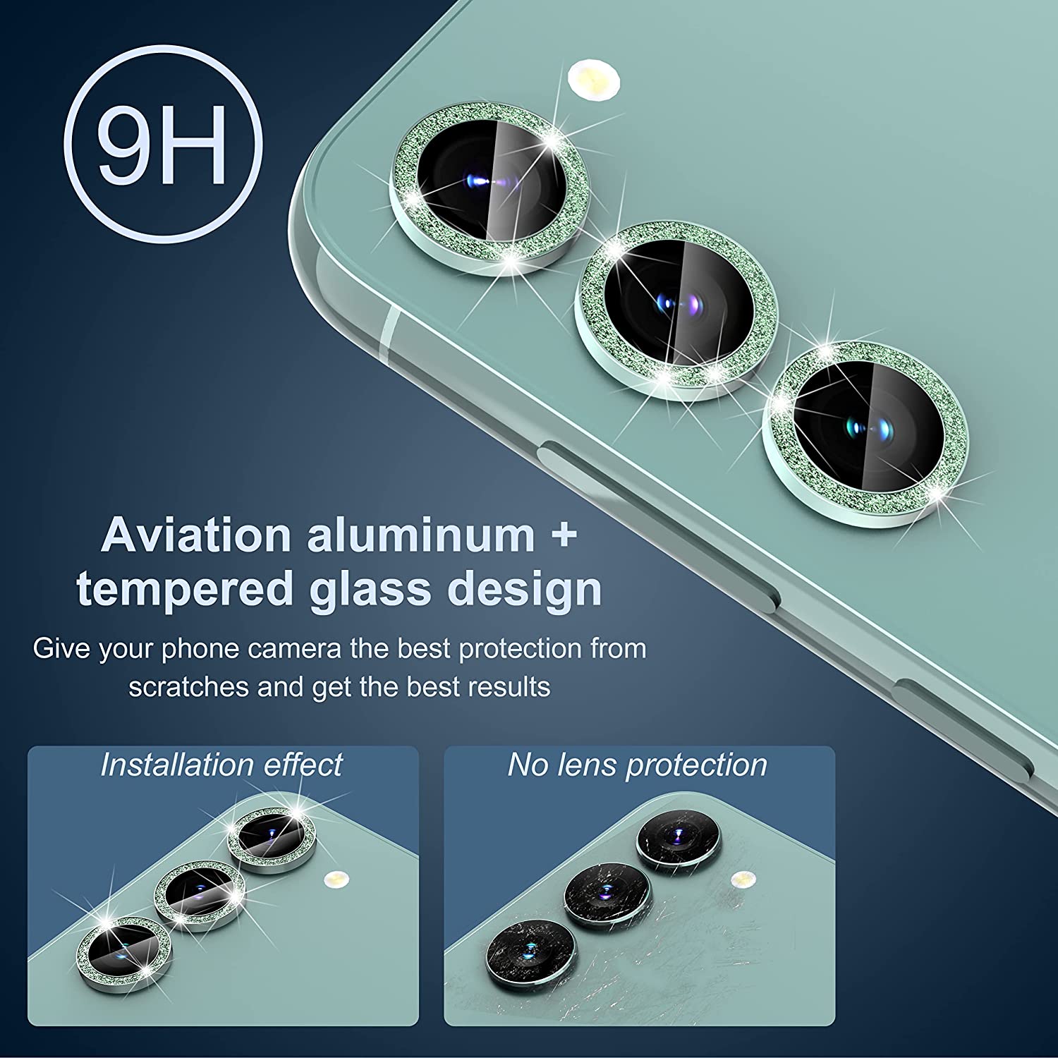 Suoman [3+3 PCS] for Samsung Galaxy S23/ S23 Plus Camera Lens Protector, Premium Tempered Glass Glitter Camera Lens Protector for Samsung Galaxy S23/ S23+ [Glitter Diamonds] - Bling Green