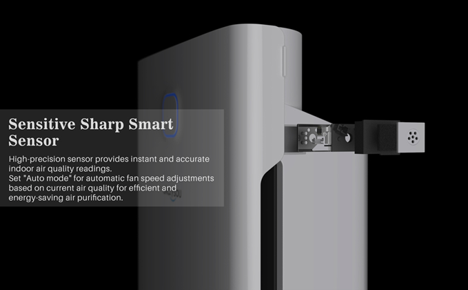 A beautiful square light panel on the front of the air purifier will change colors, based on the concentration of PM2.5.The tri-color light ring can be used as a high-speed reference for the indoor air quality, providing a clear picture of the quality of the air that you breathe.