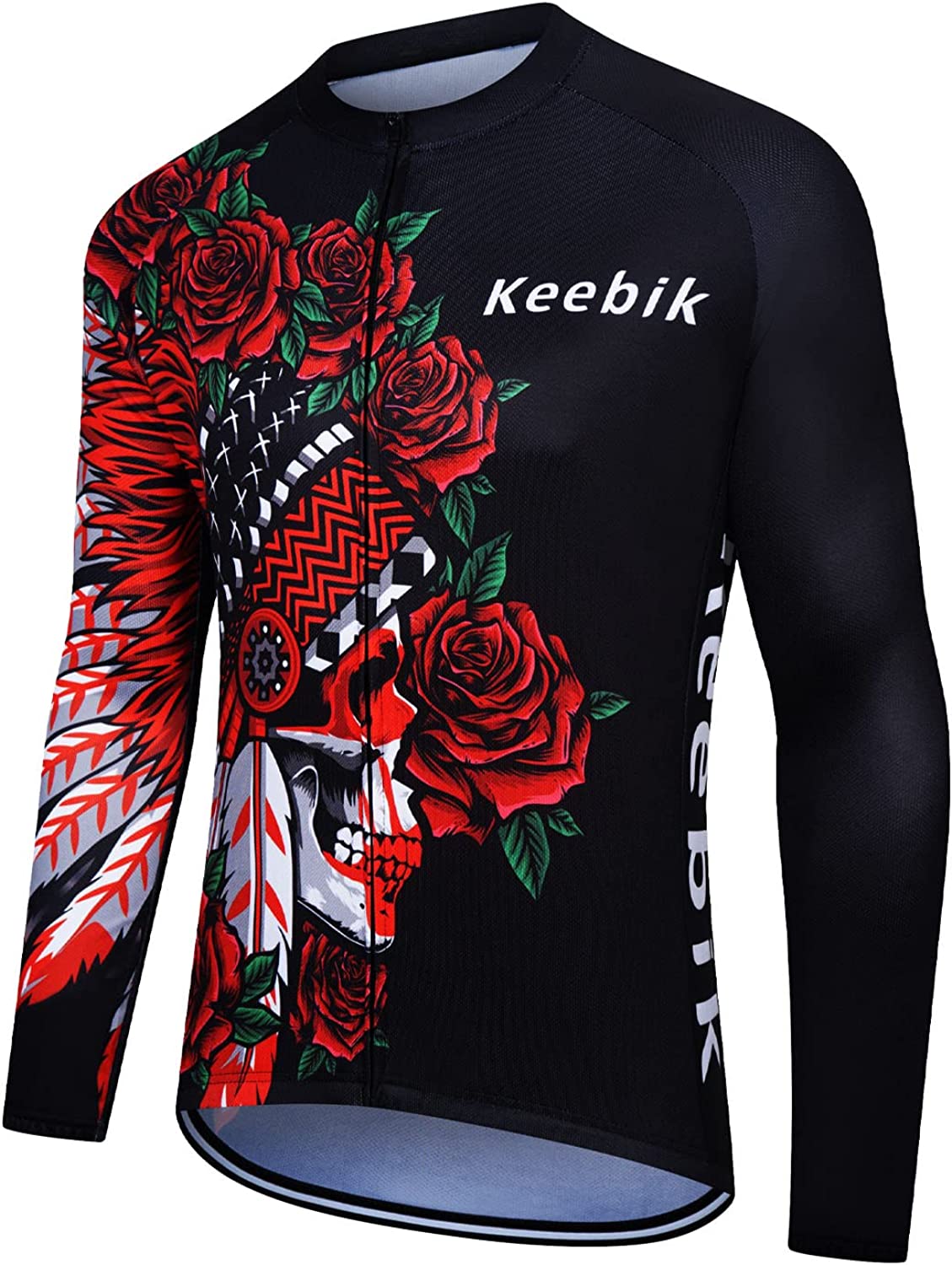 Keebik Men's Cycling Tops Bike Clothing Long Sleeve Biking Shirts Full Zipper Bicycle Jacket with Pockets
