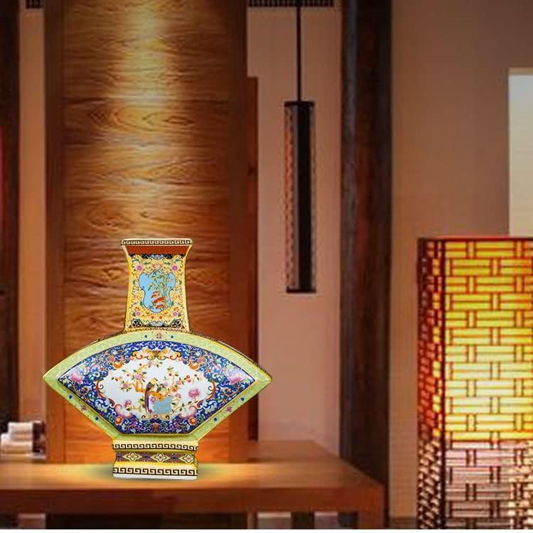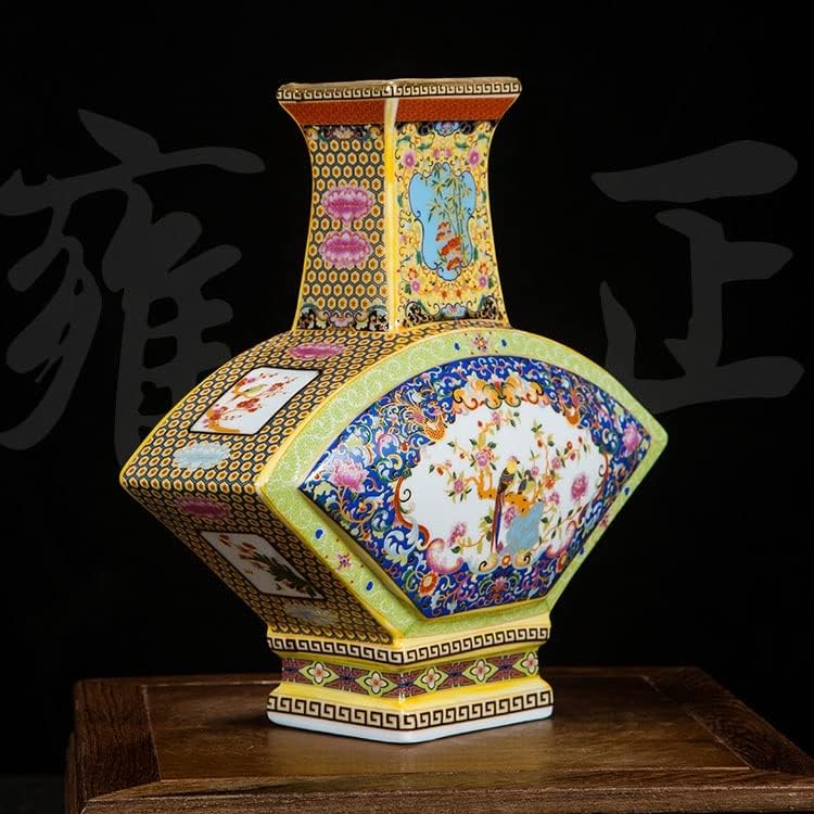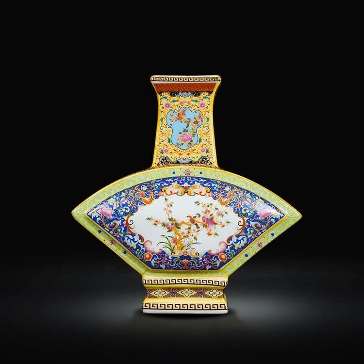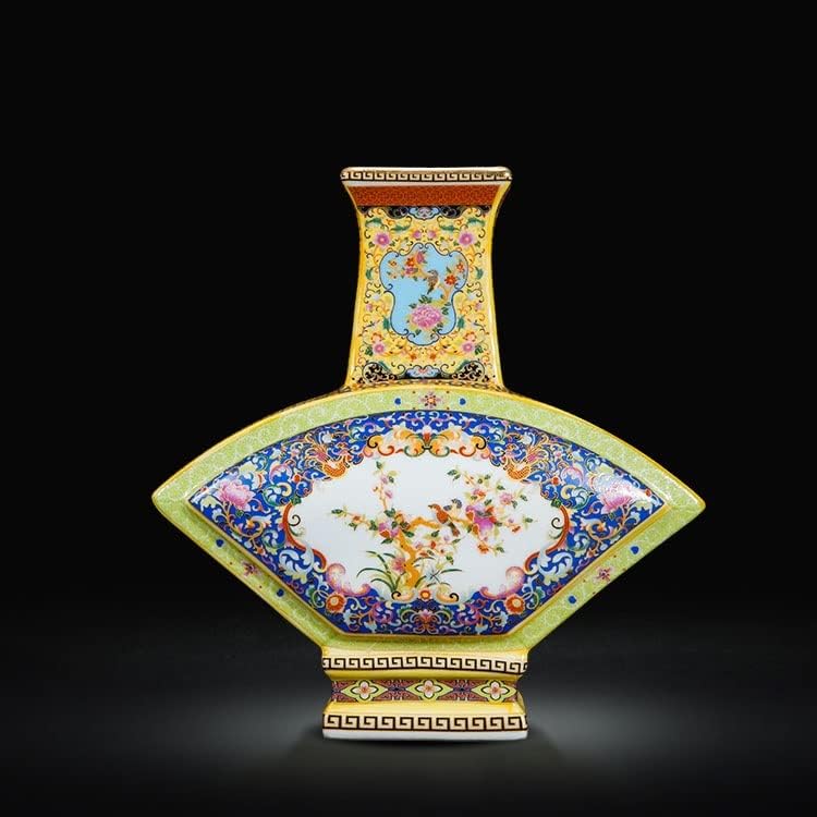 ZSEDP Jingdezhen Antique Enamel Vase Fan Shaped Vases Flowers and Birds Pattern Ancient Porcelain