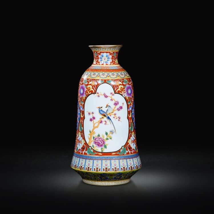 ZSEDP Jingdezhen Antique Enamel Vase with Flowers and Birds Pattern Ancient Porcelain