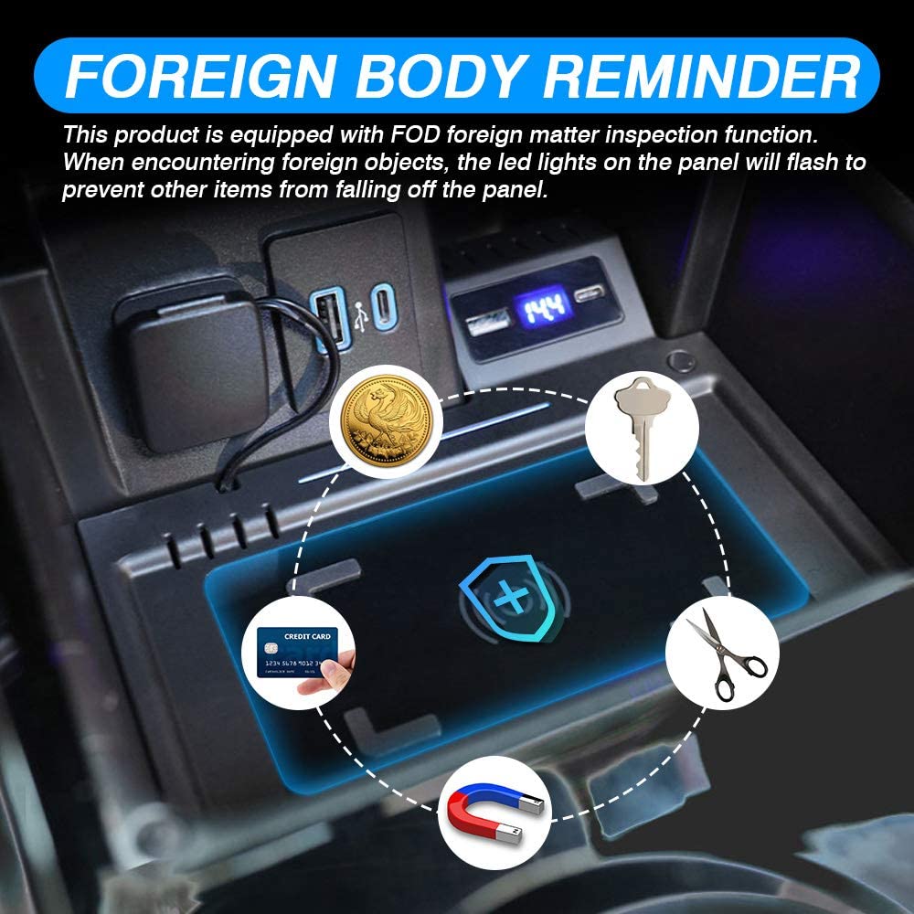 36W USB Port —— Install our wireless charger you not only own a wireless charger but also get 1 PD fast charging port, 1 QC3.0 fast charging port.2 charging ports and the wireless phone charger pad will save you from the messing with cables and cases while driving,provide the best safety protection for you.