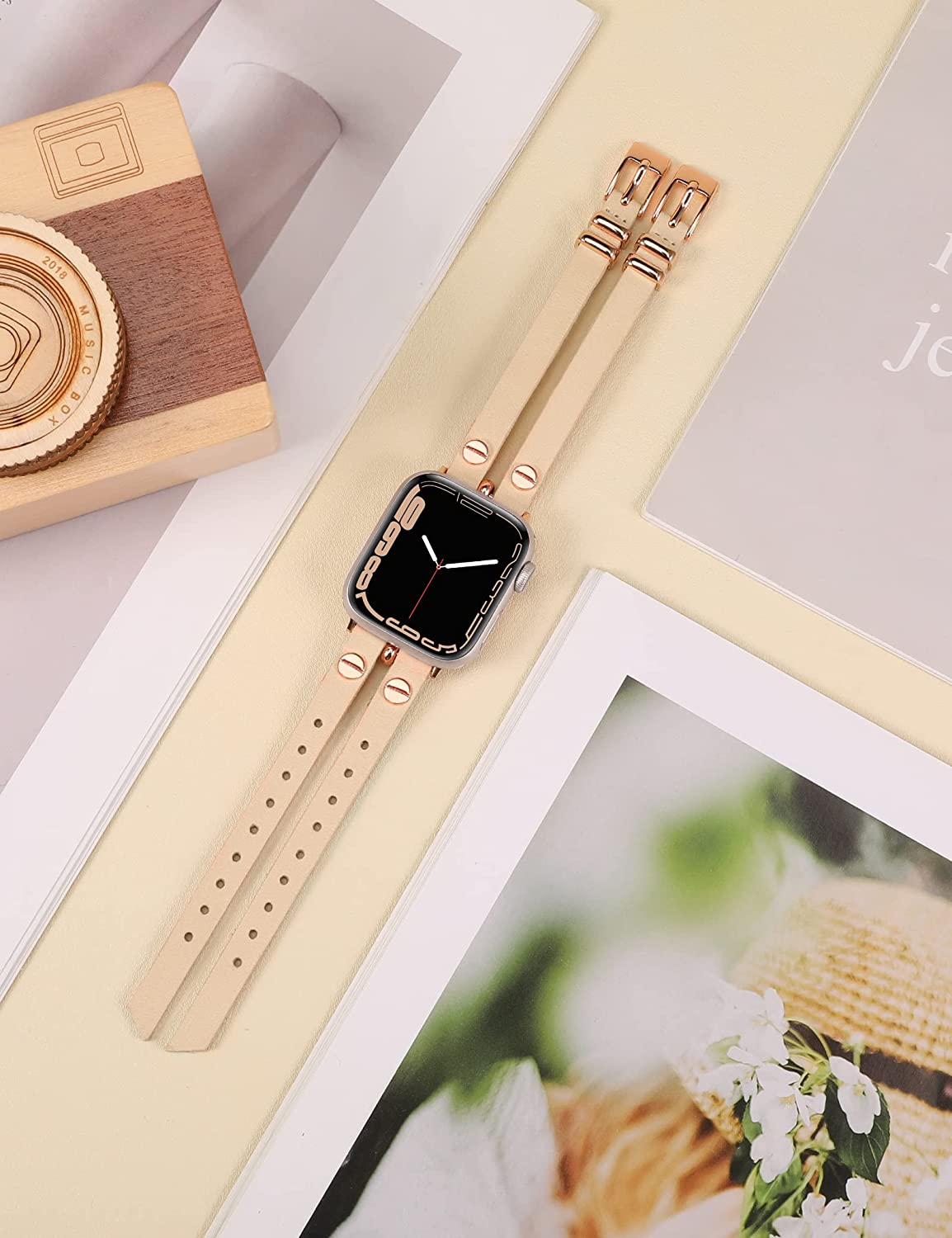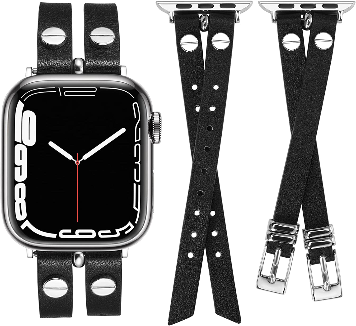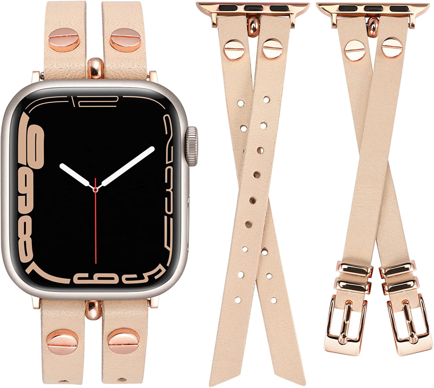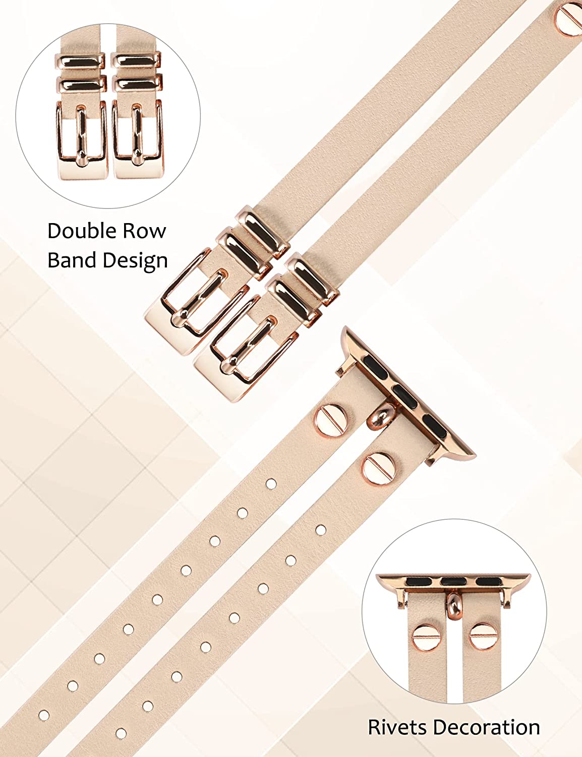 Wearlizer Leather Bands Compatible with Apple Watch Band 38mm 40mm 41mm 42mm 44mm 45mm 49mm(Ultra) Women, Double-Row Design with Rivets Decoration Stylish Strap for iWatch Series 8 SE 7 6 5 4 3 2 1