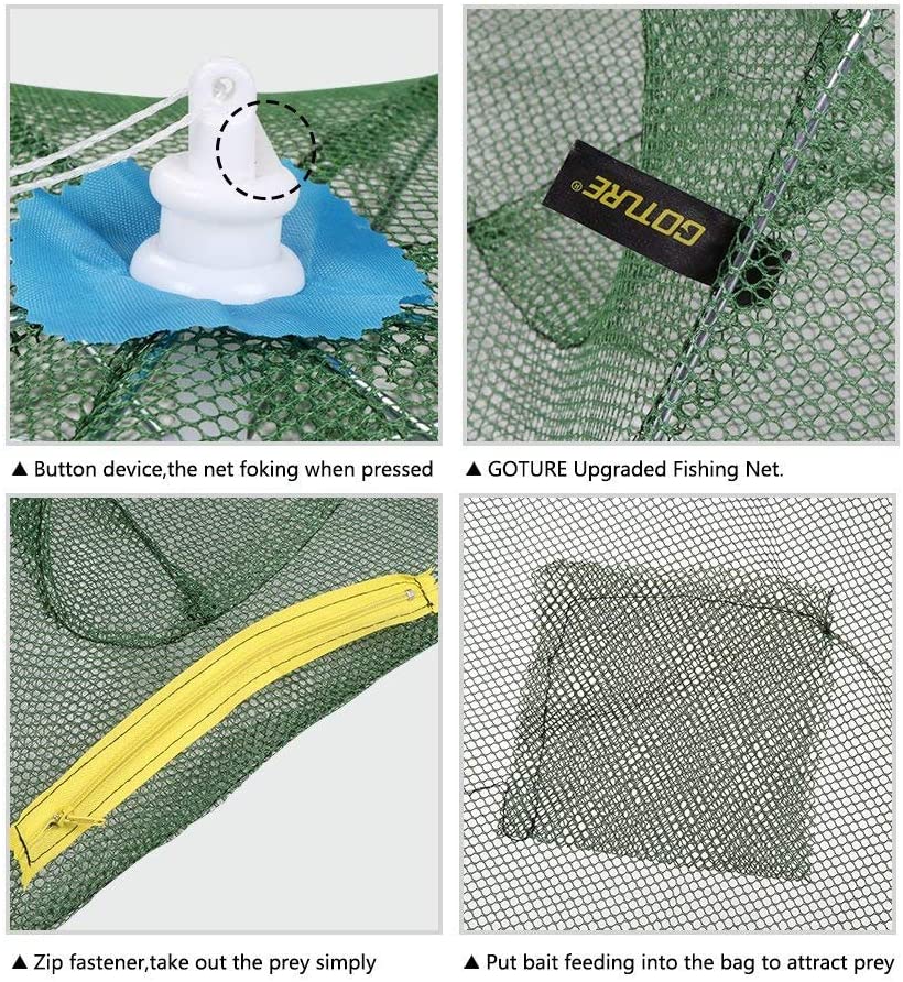Goture Collapsible Folded Crab Trap Fishing Net Minnow Fish Crayfish Crawdad Shrimp Bait Trap with Rope 8 12 16 18 Holes