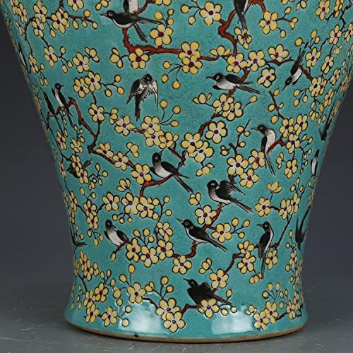 MJWDP Hand-Painted Green Pastel Rose Magpie Plum vase Antique Porcelain vase