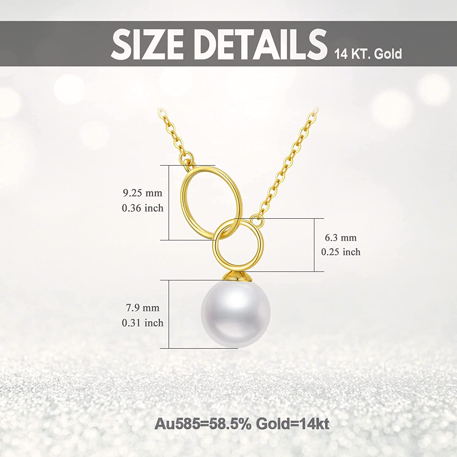 • ?Pearl Necklace Measurement: 2 Circle Diameter:9.25 mm and 6.3mm Pearl's diameter: 0.15" (8 mm); Chain length: 16"+2" adjustable extender, in total 18 inches.