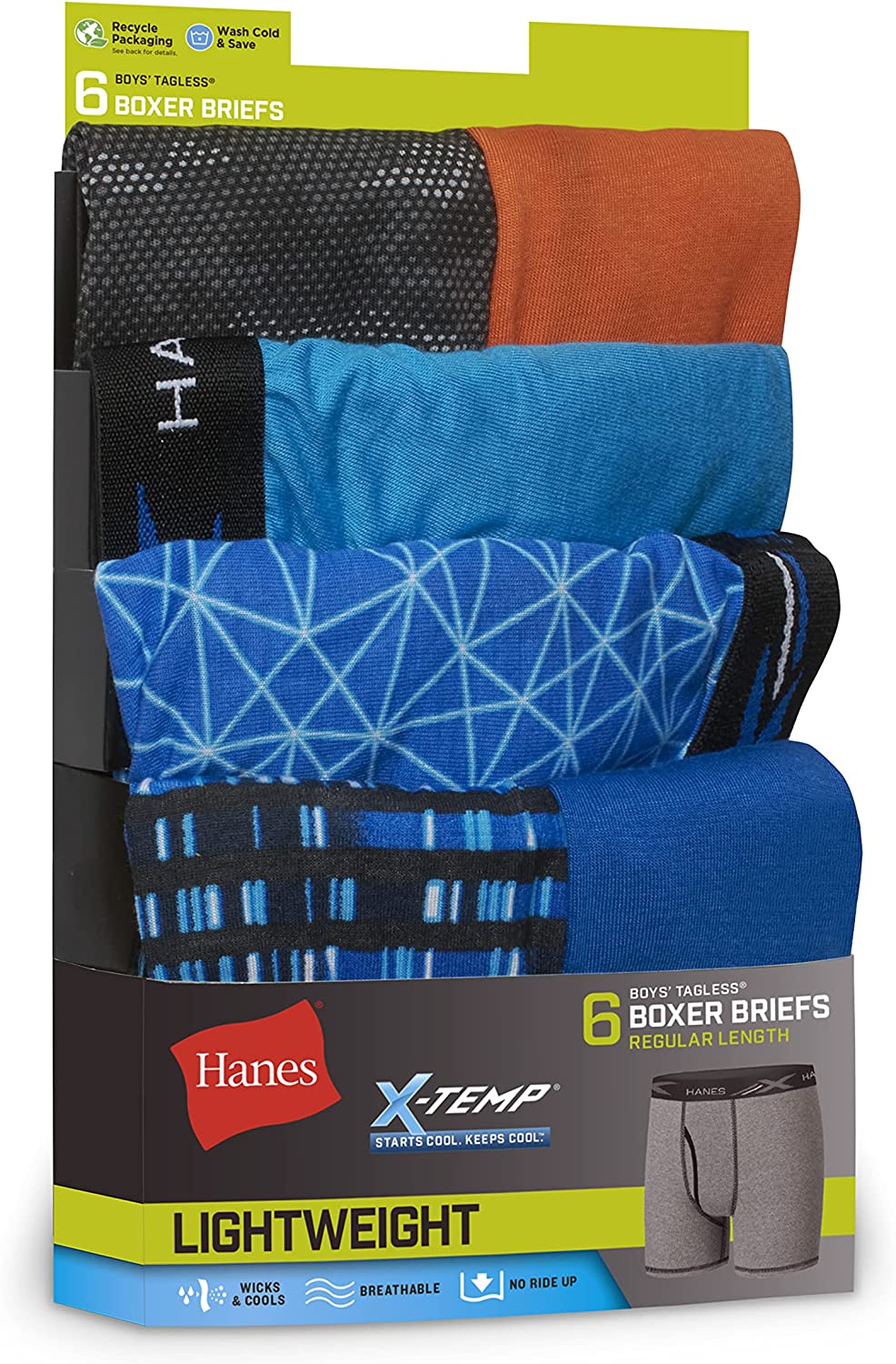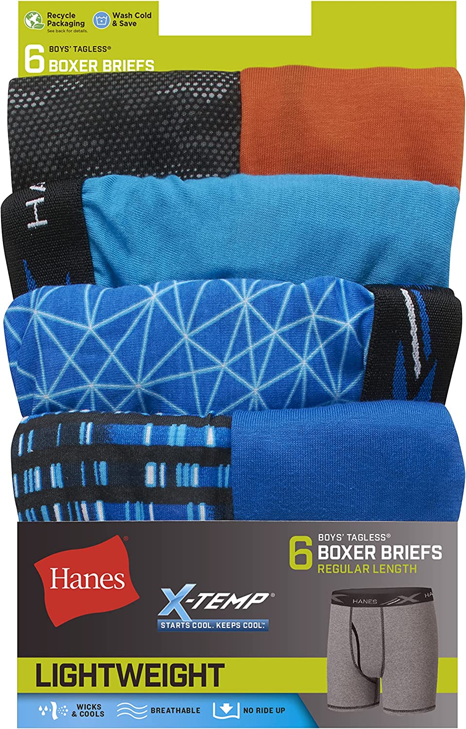 Hanes Boys' Underwear, X-Temp Moisture-Wicking Boxer Briefs, 6-Pack