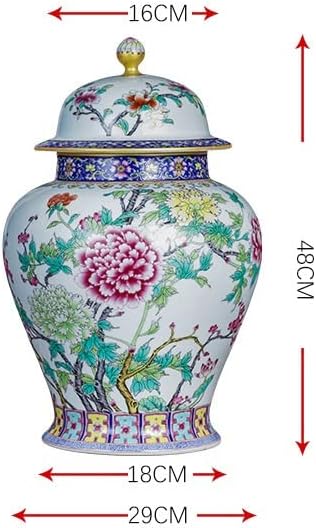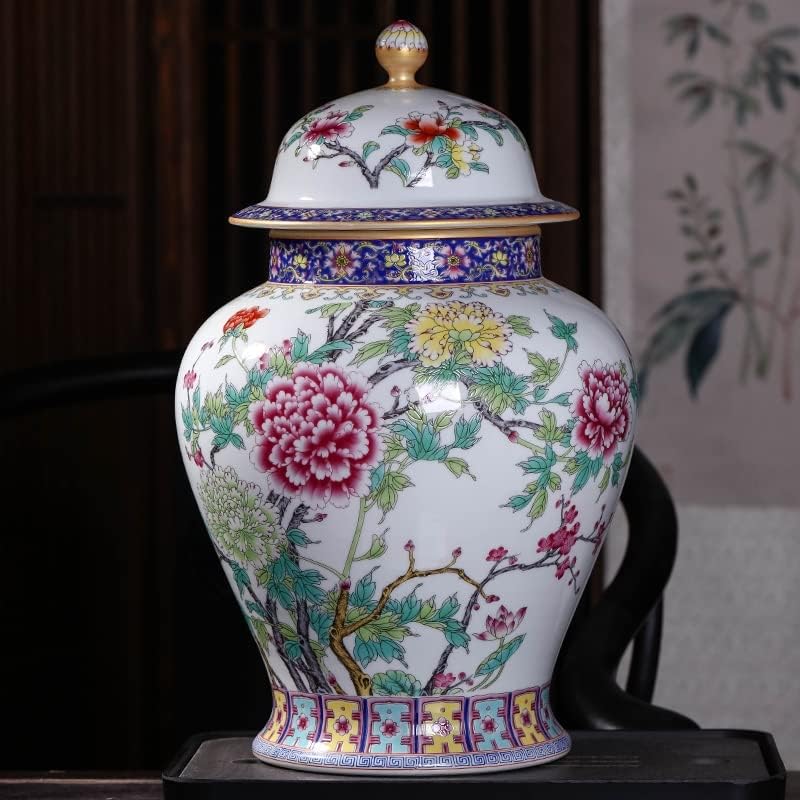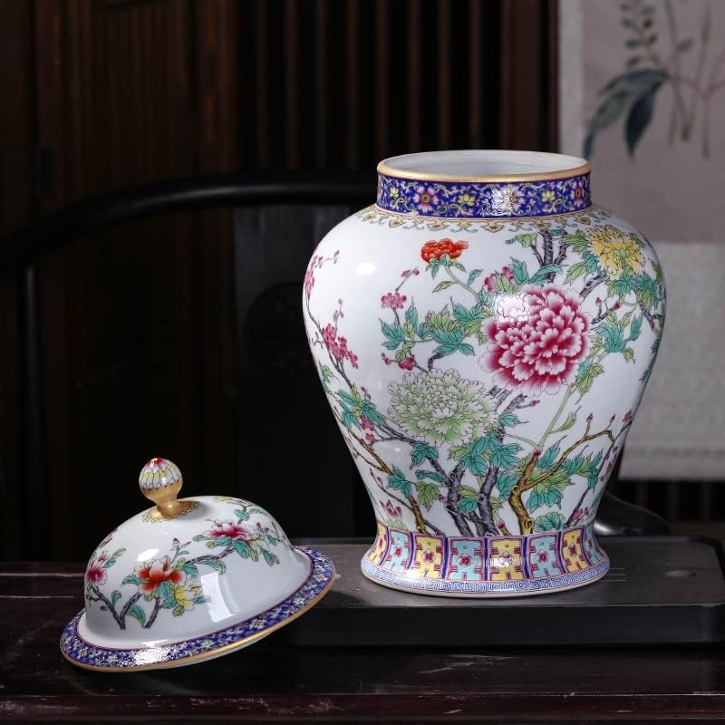 RENSLAT Jingdezhen Ceramic Antique Peony Pastel Tank Storage Tank with Cover Domestic Chinese Living Room Decoration