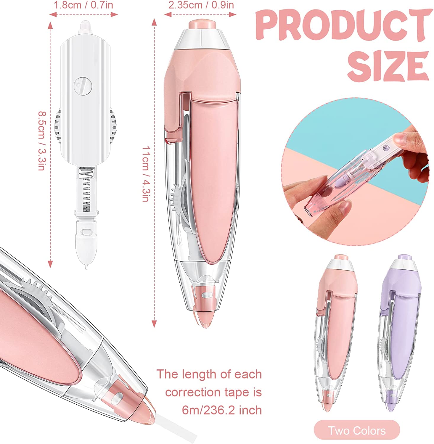 • What You Will Receive: there are 2 pieces of refillable correction tapes, coming in pink and purple colors, together with 18 pieces of replacement refills, practical and useful, the sufficient quantity will meet your daily use and replacement needs