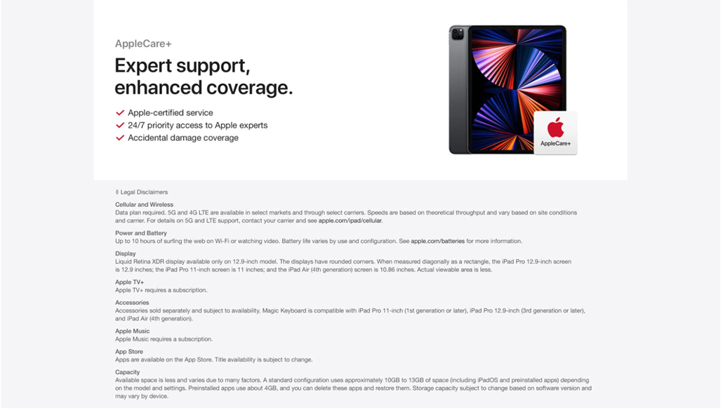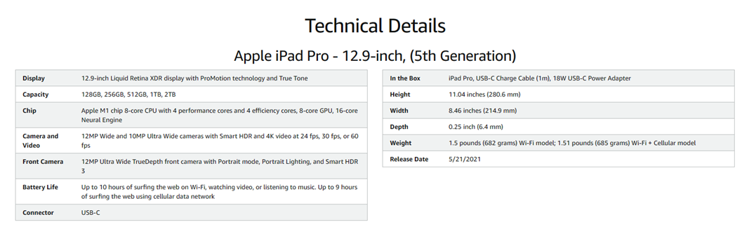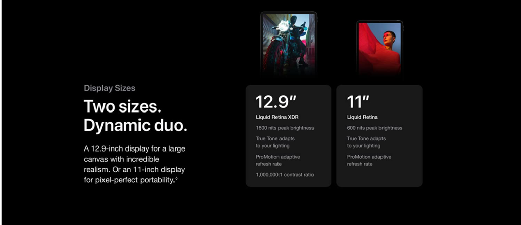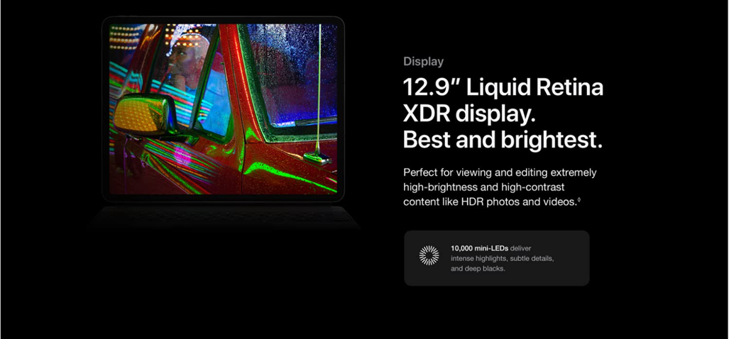 Brilliant 12.9-inch Liquid Retina XDR display with ProMotion, True Tone, and P3 wide color