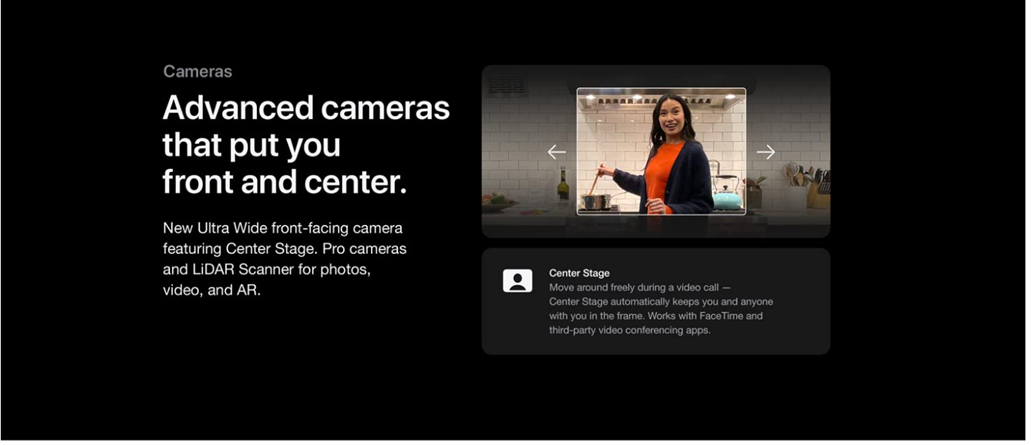 TrueDepth camera system featuring Ultra Wide camera with Center Stage