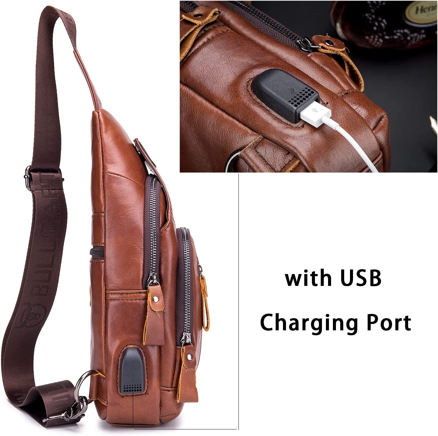 Excellent Design: with external USB charging port (power bank not included), with hole for earphone wire. this men casual crossbody daypacks has two stainless steel drings on the back. you can choose the left or right side according to your usage habits. you can wear it like a chest bag/shoulder bag/shoulder bag. It's safe, stylish, convenient, lightweight and comfortable.
