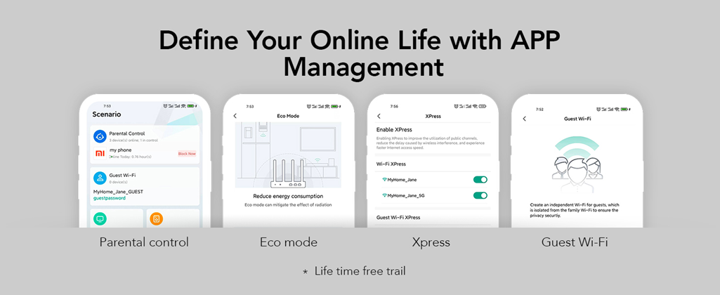 | Security | Guest Wi-Fi, Firewall, SSID hiding, Wi-Fi squatter prevention, WPA-PSK/WPA2-PSK encryption, IP & MAC Binding, Network access control |