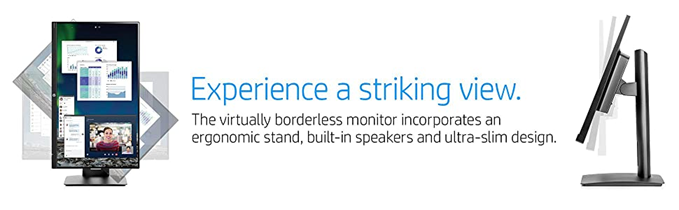 Get the best productivity from home or at the office with the virtually borderless HP VH240a 23.8-Inch display featuring an ergonomic stand, built-in speakers and an ultra-slim design at a competitively low price point. Great for projects requiring portrait and landscape mode screen rotation, the VH240a also includes a 178° positional viewing angle for the best quality no matter where you sit. You can also mount the display on a wall or arm bracket with a 100m VESA mounting pattern located on the back of the monitor arm. Connect your Windows, Mac, or any laptop featuring an HDMI port with an included HDMI cord. The video card of the connected PC must be capable of supporting 1920 x 1080 at 60 Hz and include 1 HDMI or 1 VGA output to drive the monitor at the preferred mode.