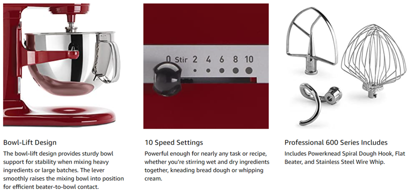 The Professional 600 Series 6-Quart Bowl-Lift Stand Mixer is perfect for heavy, dense mixtures. Burnished metal flat beater, PowerKnead Spiral dough hook and 6-wire whisk will help you mix, knead and whip ingredients into culinary masterpieces quickly and easily. And for even more versatility, the power hub fits optional attachments from food grinders to pasta makers and more.