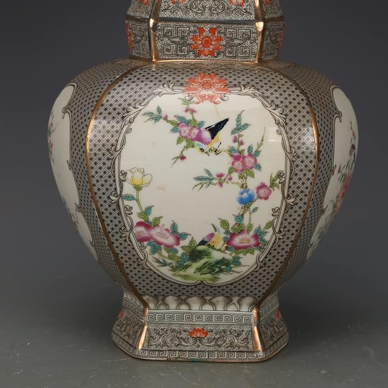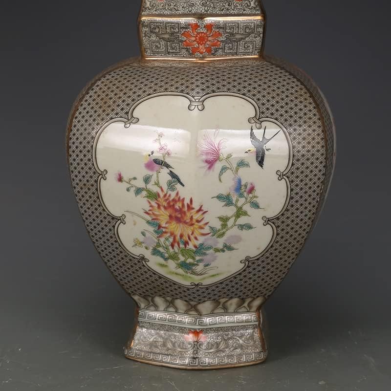 ZHYH Jingdezhen Antique Enamel Square Vases Flowers and Birds Pattern Ancient Porcelain