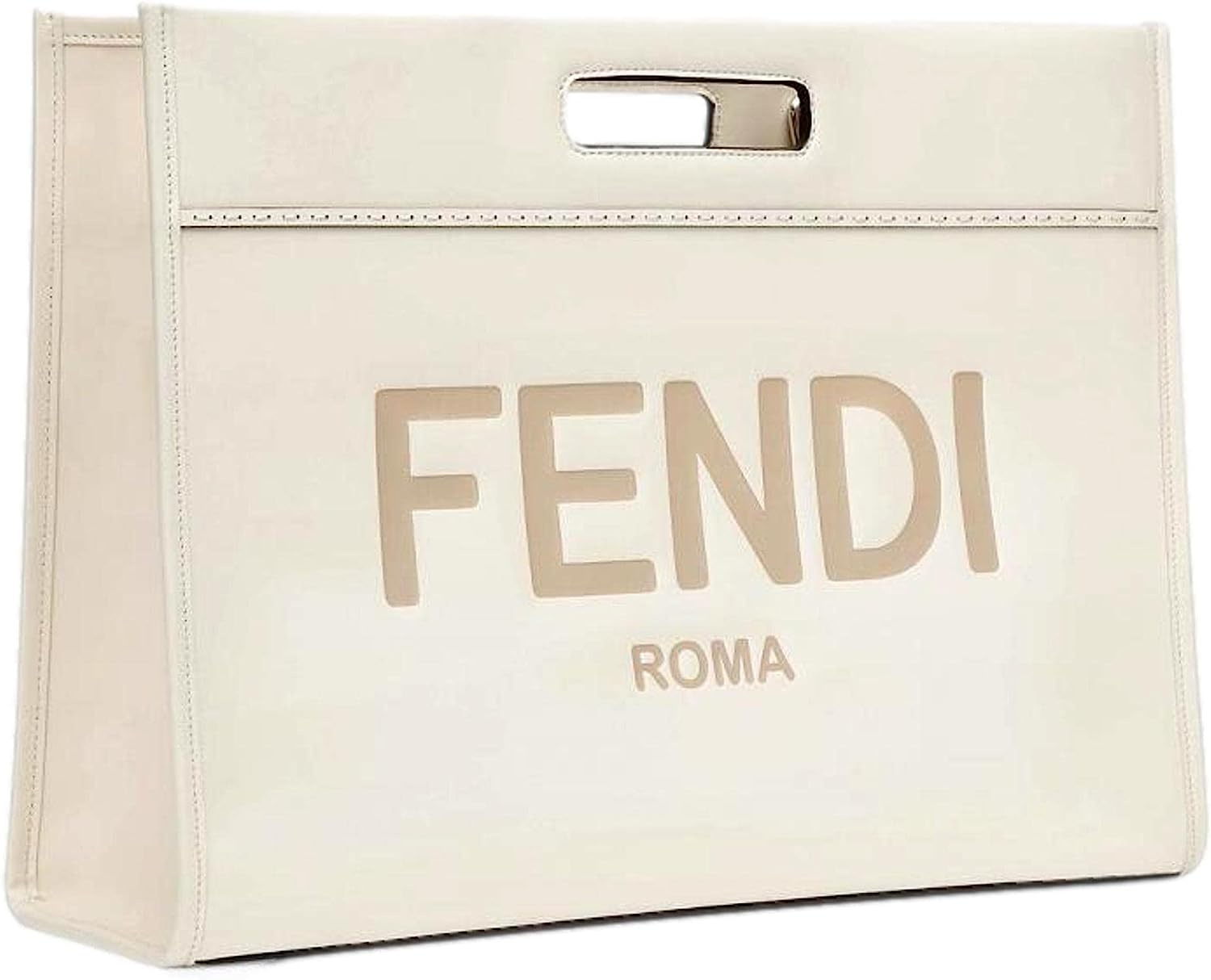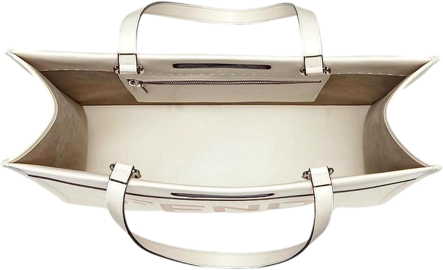 FENDI Logo 2-Way Smooth Ivory Leather Tote Bag 7VA480