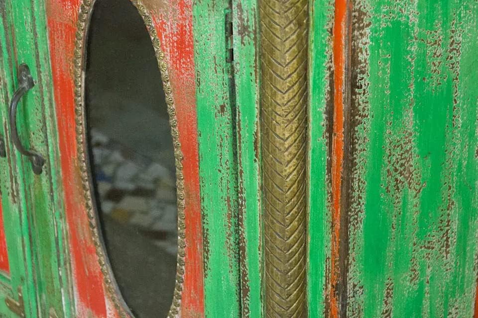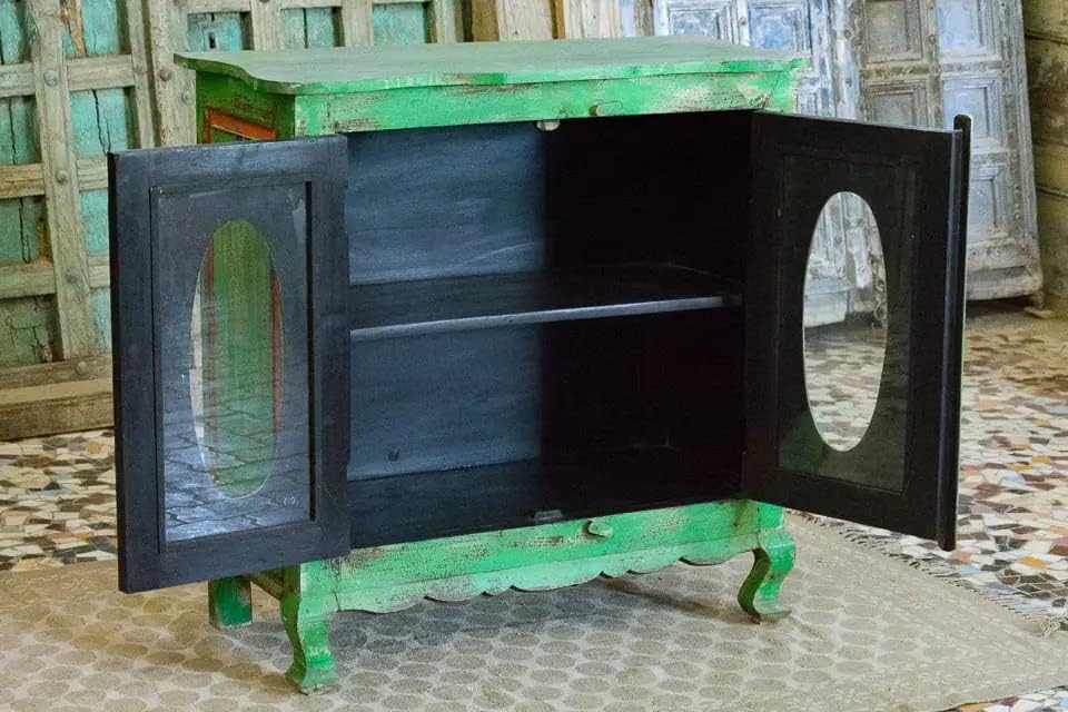 Antique Indian Brass Work Hand Carved Solid Wooden Cabinet Greenwash, Cabinet Storage Units Indian Solid Wood,Living Room Bedroom Furniture,Modern Cabinet