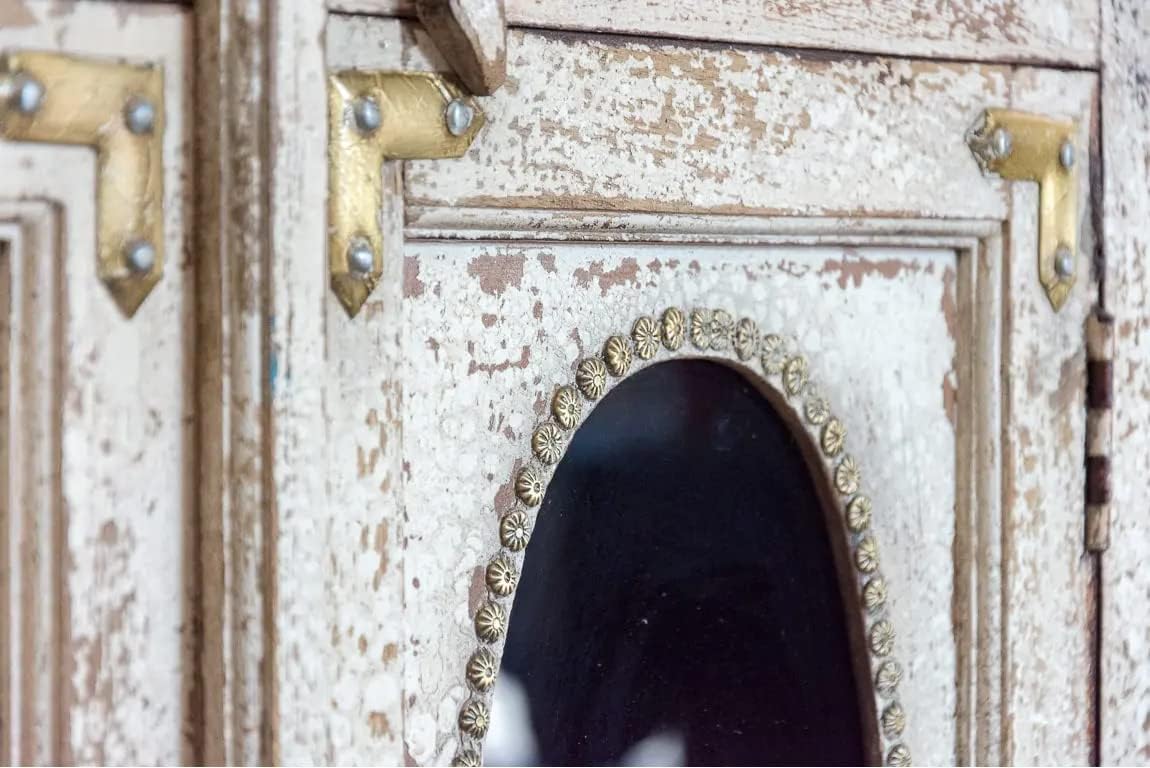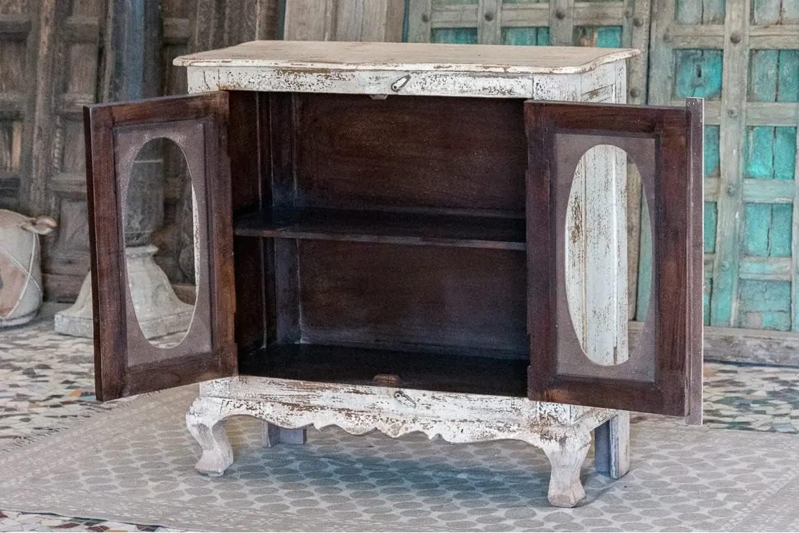 Antique Indian Glass Doors Brass Work Hand Carved Solid Wooden Cabinet Whitewash, Cabinet Storage Units Indian Solid Wood,Living Room Bedroom Furniture,Modern Cabinet