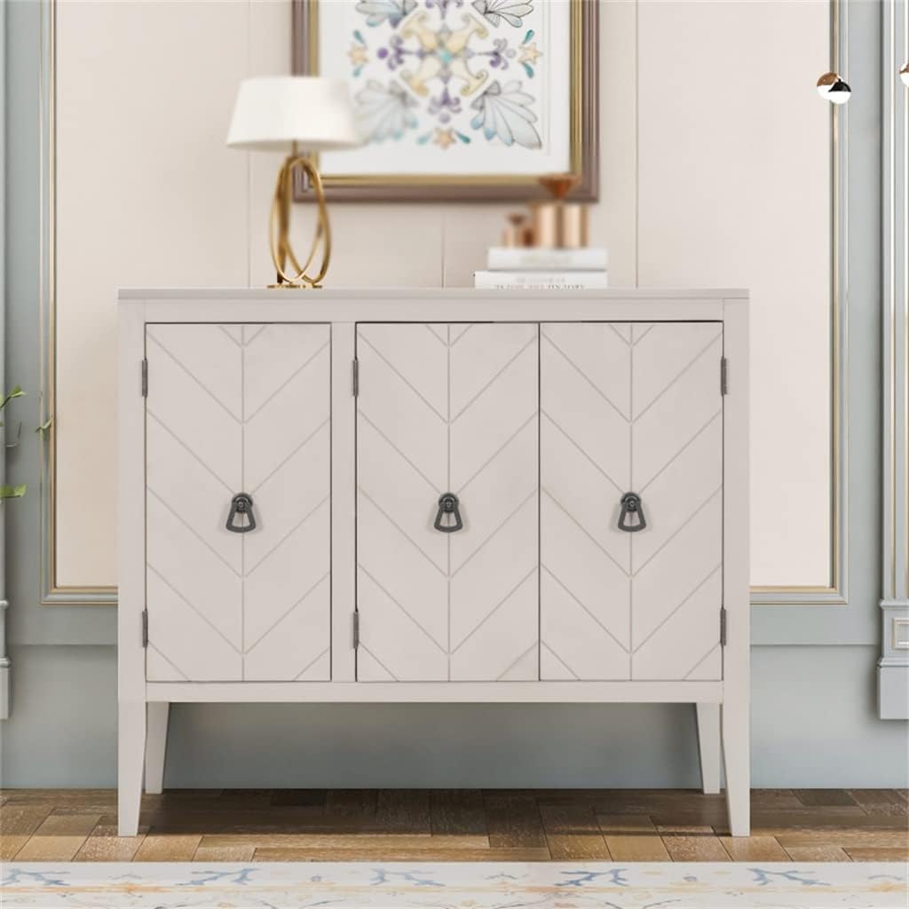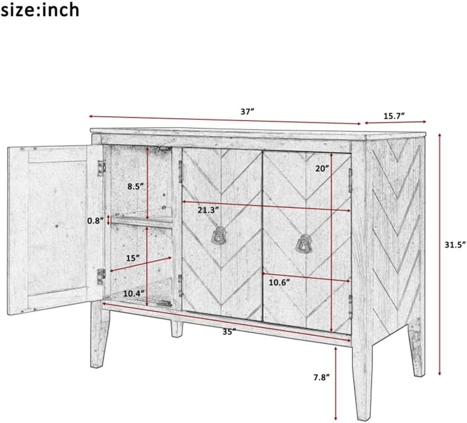 BOGE Buffet Sideboard Wooden Cabinet with Adjustable Shelves for Entryway Living Room Bedroom Antique Gray Sideboard